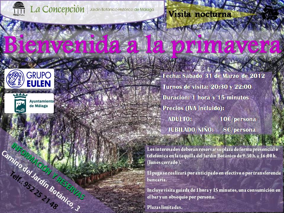 El jardín botánico se prepara para dar la bienvenida a la primavera, para ello, EULEN tiene previsto llevar a cabo una visita nocturna la noche del sábado 31 de marzo. En esta ocasión, además del jardín botánico, el recorrido incluirá el acceso guiado al patio interior y la antigua biblioteca de la Casa-palacio de los marqueses de Casa Loring. [Más información]